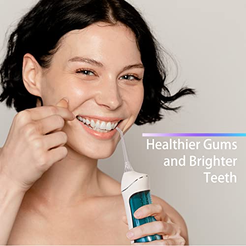 THE FRESHEST BREATH – Professional water flosser with 1400 pulses per minute, 4pcs of classic nozzles with a 0.6mm diameter ultra-fine double water column and 45°radian angled nozzles, which comfortably shuttle between your teeth to remove food debris and wash away harmful plaque and bacteria. You can reach areas that a toothbrush just can’t, resulting in a deeper clean, healthier mouth, and fresher breath.
