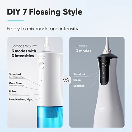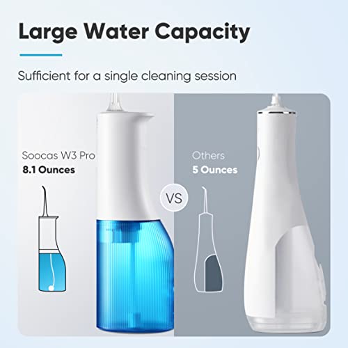SOOCAS Water Flosser Water Pick: for Teeth Cleaning Cordless with 7 Cleaning Solutions, 4 Nozzles, IPX7 Waterproof and Rechargeable for Travel and Home Use – W3 Pro Blue