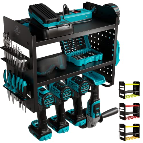 PROFESSIONAL-GRADE DURABILITY let our tool organizers and storage shelves serve you for years on end. With a high-quality metal construction and beautiful powder-coated finish, this power tool holder stores, organizes, and looks great while doing it