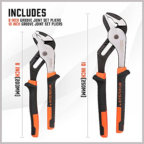 HORUSDY 2-Pliers Groove Joint pliers Set, 8 & 10-Inch Adjustable Water Pump Pliers